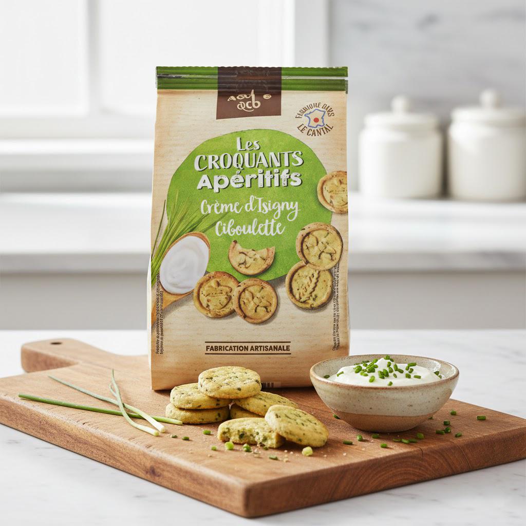 La crème Isigny utilisée est rigoureusement choisie pour son onctuosité et sa qualité, associée à de l’ail parfumé et de la ciboulette fraîche pour une saveur intense et équilibrée. Le résultat : des biscuits savoureux, croquants et délicatement aromatisés.